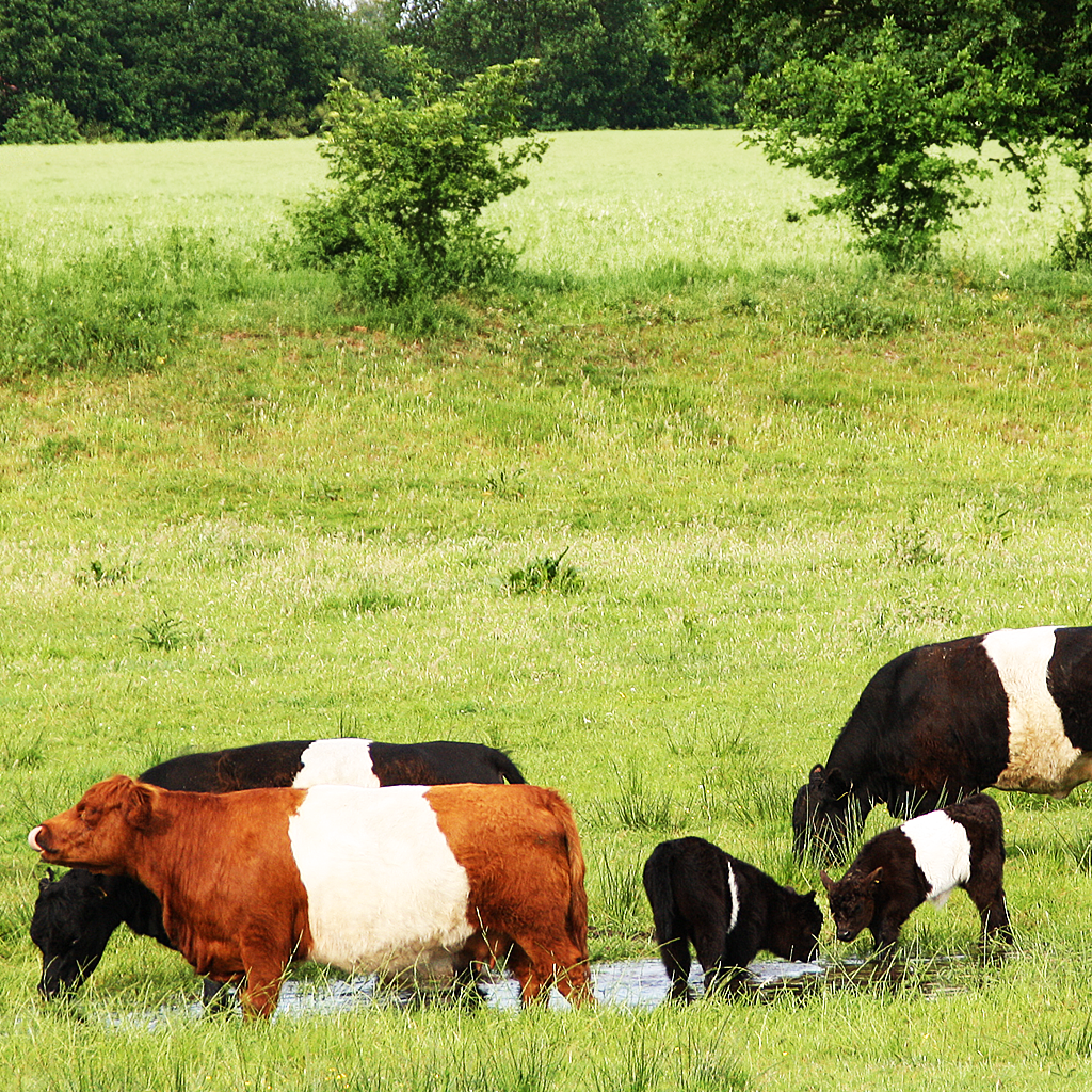 Unverwechselbarer Geschmack und höchste Fleischqualität – unsere Belted Galloways werden ganzjährig artgerecht im Freien gehalten und nach ökologischen Richtlinien gefüttert.